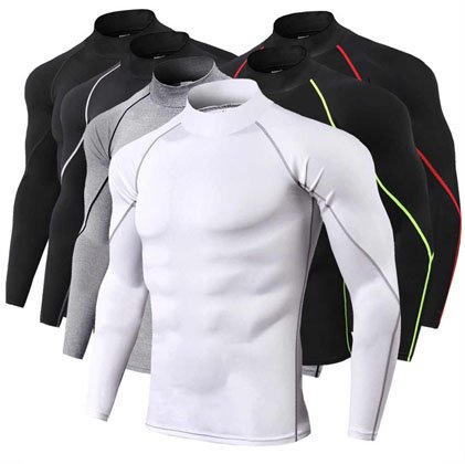 High collar Compression Shirts Men Bodybuilding Sportswear T-shirt Long Sleeve Top Gyms T Shirt Men Fitness Tight Rashgard